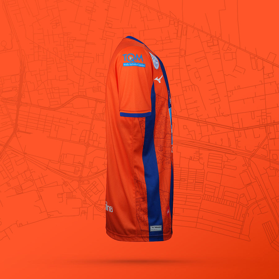 The 2025/26 Home Kit redefines Port FC’s identity. Featuring orange-and-blue stripes embedded with a detailed map of Khlong Toei and the Port area, it marks PAT Stadium — the heart of the club. More than colors, it’s a story of resilience and pride shared by generations of fans.